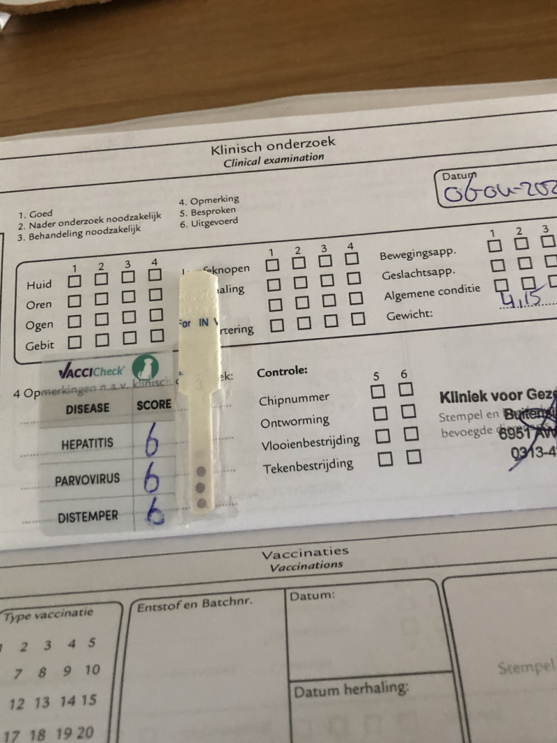 Zand is vandag getiterd.Zij heeft nog voor minimaal drie jaar antistoffen.